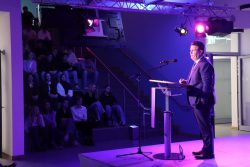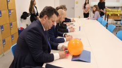 Nach einer Begrüßung durch unsere Schülervertretung folgten Redebeiträge vom stellvertretenden Landrat Matthias Möhle, Schulleiter Simon Speer, Architekt Gert Stürken und Bundestagsabgeordneten Hubertus Heil, die sich allesamt über die Funktionalität des Neubaus und die Investition in die Bildung, unsere Zukunft, freuten. Musikalisch untermalte die Session Group der Big Band unter Leitung von Herrn Weisbrodt gemeinsam mit einer Schülerband mit Stücken wie „Fly me to the moon“ oder „Blue Bossa“ die Veranstaltung. Um den Gästen ein Gefühl für den Unterricht im Neubau und den erneuerten Fachräumen im Lessinggebäude zu bieten, ging es in Gruppen zurück auf die „Schulbank“. Gemeinsam wurde festgestellt, wie sehr sich Unterricht verändert hat. Digitale Tafeln, Tablets im Unterricht, neue Fächer wie Informatik und der Ganztag mit seinen vielfältigen Angeboten prägen heute den Schulalltag. In der Kunst wurde unter der Anleitung von Oberstufenschülern praktisch gearbeitet: Zuerst wurde ein Gegenstand aus einem Koffer entnommen und dieser anschließend auf ein Post-it gezeichnet. Die Ergebnisse könnt ihr in den Vitrinen betrachten.